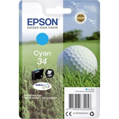 Experience vibrant and professional-quality printing with the Epson Golf Ball 34 Cyan Ink Cartridge. Designed specifically for use with the Workforce Pro WF-3720DWF and WF-3725DWF printers, this ink cartridge boasts a standard capacity of 4.2 ml and can yield up to 300 pages. Whether you are printing important business documents or assignments for your children, this ink ensures your outputs are clear and visually appealing.