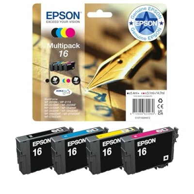 Epson Pen & Crossword High Yield Genuine Multipack,Ink Cartridges, DURABrite Ultra Ink,Cyan, 4 colours, 16XL