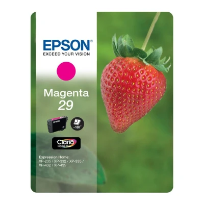CurrysThe Epson Strawberry 29 Magenta Ink Cartridge offers crisp, vibrant images and sharp text that resists fading.Designed for every day printing, the Strawberry Magenta Ink Cartridge is compatible with Epson Home Expression XP-235, XP-332, XP-335, XP-432 and XP-435 printers. The easy to use Epson Strawberry 29 Magenta Ink Cartridge offer affordable, reliable printing for your modern home office.