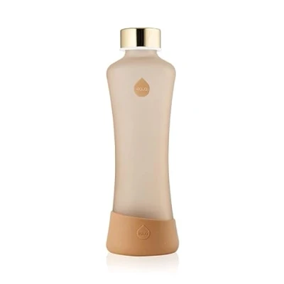 EQUA Squeeze Glass Water Bottle, 550ml, Reusable, Leak proof, BPA free, Matte, Silicone Bottom, Cinnamon
