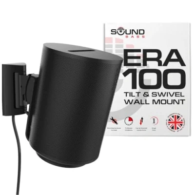 TILT AND SWIVEL FOR CUSTOMIZED AUDIO: Experience complete control over your listening experience with our mount's wide swivel range of 53° left/right (wall to wall) and tilt 36° down / 4° up. Easy, tool-free adjustments allow for personalized audio positioning, ensuring the best sound quality in any room setup. FLEXIBLE MOUNTING OPTIONS: Our high-quality mount is designed for versatility, allowing both upright and upside-down installations. This feature provides easy access to your Sonos Era 100's touch controls, making it convenient to adjust settings as needed. PREMIUM BUILD, SUPERIOR DURABILITY: Constructed from high-grade aluminum and PA66 plastic, materials commonly used in aerospace and automotive industries, our mount offers unparalleled strength and longevity. It's built to securely hold your Sonos Era 100, ensuring it stays safely in place over time. ELEGANT DESIGN, EASY INSTALLATION: Seamlessly complementing the Sonos Era 100's sleek design, our wall mount is not only a stylish addition to your home audio setup but also easy to install. Achieve a secure wall mount in just 15 minutes using basic household tools. SECURE AND RELIABLE MOUNTING: Our mounting method ensures a rock-solid connection, preventing any accidental dislodging of your speaker. This secure mounting solution provides peace of mind, knowing your Sonos Era 100 is safely attached. (Note: Speaker not included.)