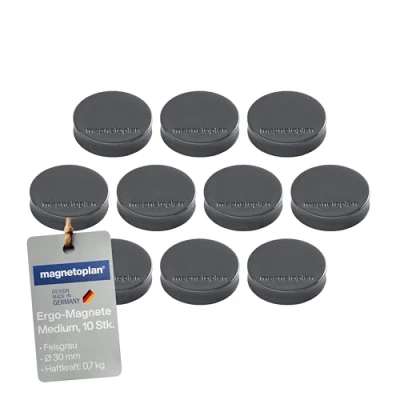 Ergo Magnets, Medium, Diameter 30 mm x 8 mm, Pack of 10 felsgrau