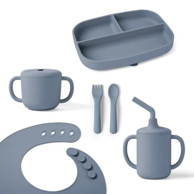 Ergobaby Children's Deluxe Tableware Set for Babies and Toddlers from 6 Months, Baby with 2 Cups, Tray, bib Cutlery, Without BPA, PVC phthalates, Soft Blue