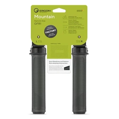 The Ergon development team always works very closely with athletes and teams, which enables them to design products for the highest demands within their target group and to be used at the very limit.The grip has a slim overall shape for maximum feedback, yet still provides an extremely high level of damping through the ribbed section under the palm. The lower grip zone (finger) is strongly pronounced to keep gripping forces at a minimum when lifting the front wheel. The slim inner stop further assists in finding the right hand position while still providing free shifter access.The high-strength alloy clamps on the inside keeps the grip from twisting – even on carbon bars. The Factory version provides incredible grip and rebound properties. The grip feeling sensation) is soft but still super defined and precise.