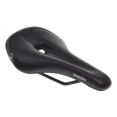 The Ergon E-Mountain Sport Saddle is designed specifically for eMTB riding.The Ergon design team has analysed the requirements of E-Mountain bikers in detail. Longer periods of sitting, steeper uphills and greater levels of impact characterise the E-MTB experience. After intense development, the optimal saddle shape was found. The rear ramp better supports the rider in steep uphill riding situations when seated. The V-shape offers freedom of movement across the wide flanks up to the padded nose – important for particularly steep climbs.Key Features:Shell: Nylon CompositeRails: CroMoCover: MicrofibrePadding: Orthopaedic Comfort Foam with OrthoCell InlaysWeight: 335g (S/M), 350g (M/L)Sizes:S/M 9-12cm Sit bone widthM/L12-16cm Sit bone widthHighlights:Supporting Ramp: Strongly raised ramping for maximum support from behind – helps to stabilize your position on the bike and saves energy when riding uphill.Soft Comfort Padding: Maximum comfort when seated due to thicker padding – even on long rides. Pronounced Relief Channel/Cut-Out: The Relief channel helps to avoid numbness and provides increased protection for soft-tissue areas. Specially adapted for men and women. Pressure Relief Inlays: More comfort thanks to the OrthoCell®-Inlays in the seating area, which helps distribute pressure better. Wide Front: In particularly steep trail sections, the position often is shifted towards the front. That’s why the E-Mountain’s saddle nose is deliberately designed wide and comfortable. Integrated Mount: Convenient removable mount for accessories like Topeak® saddlebags.