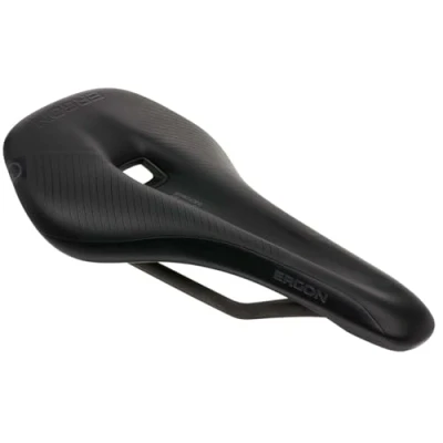 Lightweight with carbon rails and carbon Composite saddle shell Orthocell-inlays in the seating area generate the best possible pressure distribution The deepening relief Channel with Cut-out evenly distributes pressure Y-shape helps keep the freedom of movement High even in the Low riding position Weight 175g