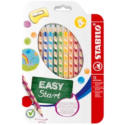 Ergonomic Colouring Pencil STABILO EASYcolors Left Handed Pack of 12 Assorted Colours with Sharpener