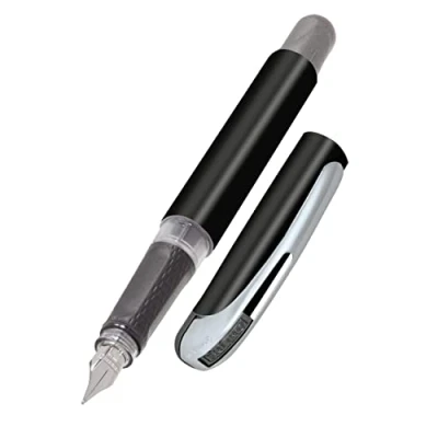 Ergonomic fountain pen for school/college ONLINE College Black solid medium nib, soft grip part, standard ink cartridges, refillable, ideal beginners/pupils/students