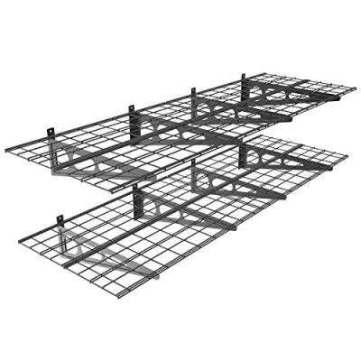 Amazon PG26 - Double ceiling shelf, ceiling storage rack support to save floor space in your garage, basement, attic, store or workshop. Sturdy steel structure, mesh bottom, adaptable anchor point. Maximum load: 90 kg! Dimensions: 91.4 x 60.9cm (x2). Screws provided.