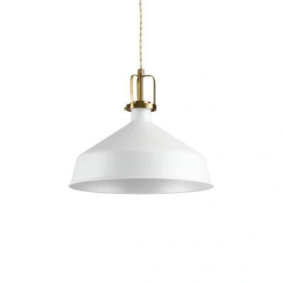 This collection offers the ultimate choice with its large variety of pendants. The fittings are offered in two different shapes, each of which is available in a choice of two sizes. The entire range is available in a black or white finish, both of which have satin gold details. The ceiling base matches the finish of the diffuser. Ideal as a main light fixture in the room. Class one.