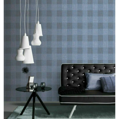 General description A classic check design in mixed tones of on-trend blue, black, and grey with glitter throughout. This wallpaper is perfect for creating a feature wall or for whole room coverage. Technical specifications Dimensions: 10m x 0.53m Coverage per roll: approximately 5.32 sqm Usage Easy to apply - Paste the wall method Strippable and extra washable Good lightfastness