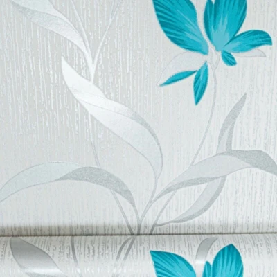 General description A classic floral design is displayed by this stunning wallpaper from Erismann. Lovely glitter features are also presented in selected areas, adding an extra sense of style and luxury. Complimented by a white, teal, and silver colourway, this wallpaper creates a perfect platform for elegance in any home. Technical specifications Roll size: 10.05m x 0.53m Pattern repeat: 64/32cm