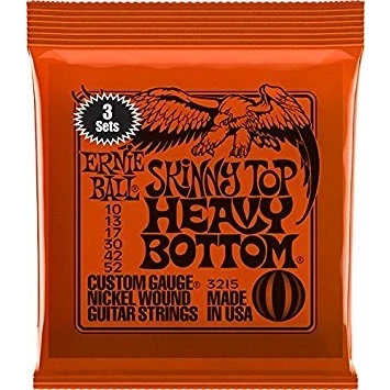 Ernie Ball P03215 Electric Guitar Strings 10 52, Skinny Top Heavy Bottom nickel Wound, pack of 3 (6 Free Plectrums Included)