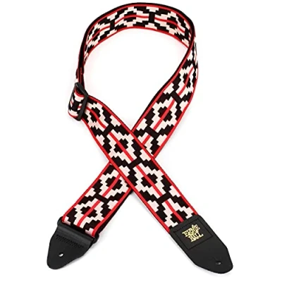 The world's number one polypro guitar strap is now available in an array of stylish jacquard patterns. Ristra Red design. Adjustable length from 41 to 72 inches. Machine-stitched leather ends. Polypropylene webbing provides comfort and durability.
