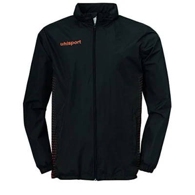 Water repellent T-mesh lining for very high breathability Stand-up collar with integrated hide-away hood Two zippered pockets Brand: uhlsport