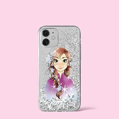 ERT GROUP mobile phone case for Apple Iphone 12/12 PRO original and officially Licensed Disney pattern Anna 001 optimally adapted to the shape of phone, with glitter overflow effect
