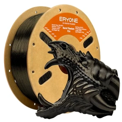 【Color Changes】ERYONE Burnt Titanium filament transforms colors with changing light, producing a captivating glitter starry-like effect, adding artistic to your projects. 【Effortless Printing】Print with ease using ERYONE's recommended settings. Compatible with a wide range of 3D printers. Suggest printing with hardened steel nozzle, ensuring a user-friendly experience. 【Eco-Friendly PLA Material】ERYONE choose environmentally friendly PLA material make filament, make sure on the quality of your prints. 【Sealed, Dry and Dust-free】Sealed vacuum bag to keep it dry and keep out dust. 【Product information】Net weight 1kg, shipping weight 1.33kg; spool inner diameter 56mm, spool outer diameter 204mm.