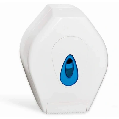 Colour: White Material: Plastic Capacity 1 x roll Height: 250mm Width: 115mm Depth: 115mm Weight: 0.8kg Lockable This dispenser is made from smooth, injection moulded plastic and has a self-locking cover, accessed using a universal modular key (supplied) Comes with a reversible spigot to accommodate varying roll core diameters Dispenses NWJ27150N mini jumbo rolls