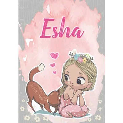 Esha: Notebook A5 Personalized name Esha Birthday gift for women, girl, mom, sister, daughter ... Cute little girl with cat 120 lined pages journal, small size (ca. 6 x 9 inches)