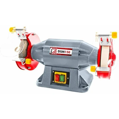 General description Holzmann DSM150 is a high-quality 150 mm double-ended professional bench grinding tool designed for efficient tool sharpening and workpiece preparation. It features a powerful 520 W induction motor and twin 150 mm grinding wheels, making it ideal for grinding a wide variety of materials and work projects. Technical specifications Motor power: 520 W Disc diameter: 150 mm Grinding wheel dimensions: 150x25x32 mm Speed: 2950 min -1 Grinding disc materials: K36 and K80 Dimensions: 254x471x261 mm Net weight: 15.50 kg Gross weight: 16.50 kg Packaging dimensions: 254x471x261 mm Other information Eye shields to protect the operator from the projection of fragments Adjustable tool holder to extend the life of the grinding discs Includes 2 grinding wheels: 1 with grain 36 and 1 with grain 80