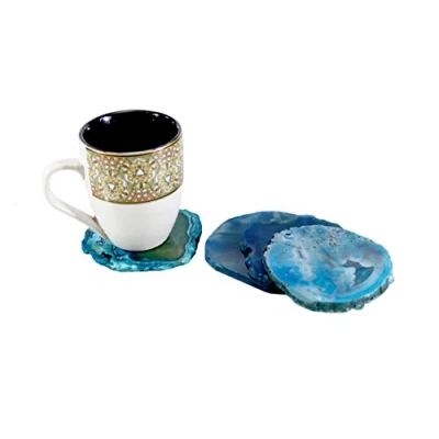 eSplanade Agate Coasters Bar Beer Coffee Tea Set of 4 Perfect Table Accessories Tableware (Blue)