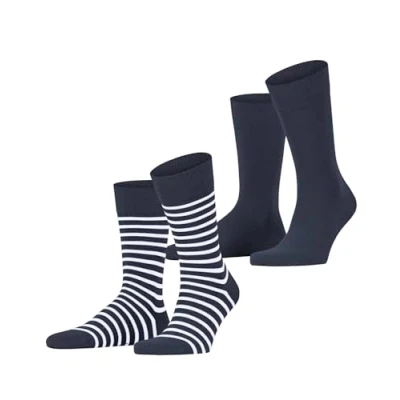 ESPRIT Men's Fine Stripe 2 Pack Socks Breathable Organic Cotton Reinforced Extra Soft On Skin Flat Seam In Toe Area Patterned For Casual Dress Business Looks Multipack Pairs