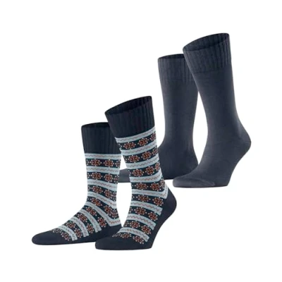 ESPRIT Men's Scandi 2 Pack M SO Cotton Wool Patterned Pairs Socks, Blue (Space 6116), 5.5 8