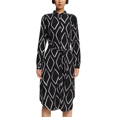 The classic shirt blouse dress is made from a flowing woven fabric and equipped with an all-over print as well as a full-length buttoned front and a tie belt at the waist. Flowing woven fabric made of viscose All-over print Shirt Blouse Dress Silhouette Kent collar