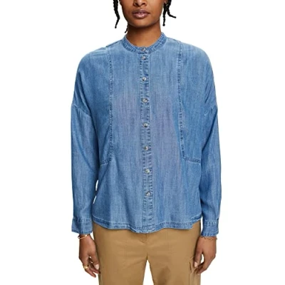 ESPRIT Women's 023ee1f305 Blouse, Blue Medium Washed, Large