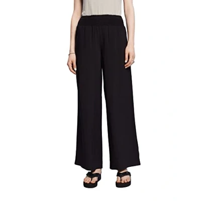 No compromise on comfort: these trousers are not only stylish but also comfortable. This casual wide leg essential with a comfortable, stretchy waistband is perfect for a variety of occasions. Woven viscose fabric Wide smocked waistband Slant front pockets Wide trouser legs
