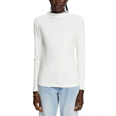 Give your basics an update with this versatile, sustainable long sleeve. The top is made from a sustainable cotton mix and provides a unique look with its ribbed design and crochet details. Ribbed jersey made from sustainable cotton, modal and stretch fabric for added comfort Stand-up collar Crochet details on neckline and sleeves Body-hugging fit