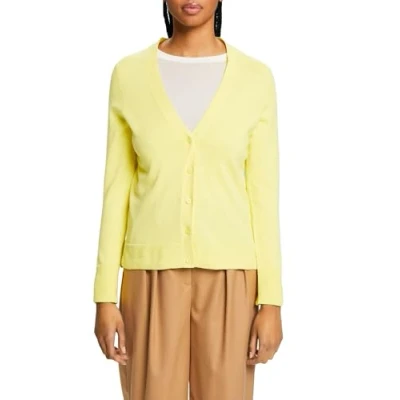 ESPRIT Women's 994ee1i312 Cardigan Sweater, 770/Pastel Yellow, M