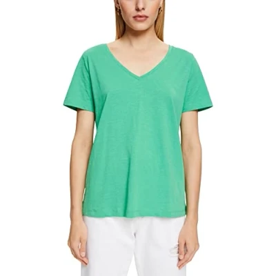 ESPRIT Women's Basic Crew Neck T Shirt, 310/Green, XXS