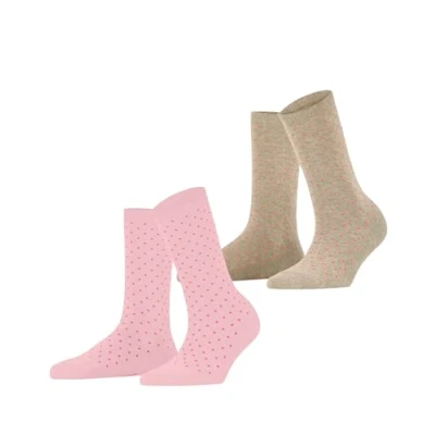 ESPRIT Women's Fine Dot Multipack W So Cotton Patterned 2 Pairs Socks, Multicolor Brown Pink 0050, 5.5 8
