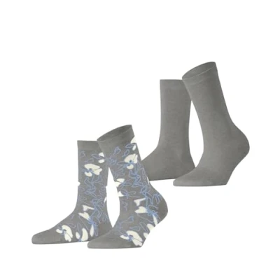 ESPRIT Women's Flower Sketch Multipack W So Cotton Patterned 2 Pairs Socks, Grey Light 3400, 5.5 8
