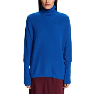 ESPRIT Women's Pullover Sweater, 100% Cotton, Long Sleeve, Bright Blue (L)