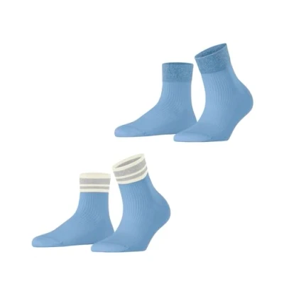 ESPRIT Women's Retro Glitter Multipack W Sso Cotton Patterned 2 Pairs Socks, Blue Light 6541, 2.5 5