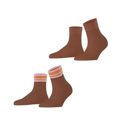 ESPRIT Women's Retro Glitter Multipack W Sso Cotton Patterned 2 Pairs Socks, Brown Rosewood 5225, 2.5 5