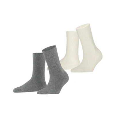 ESPRIT Women's Shimmer Multipack W So Cotton Patterned 2 Pairs Socks, Multicolor Grey Off White 0030, 2.5 5