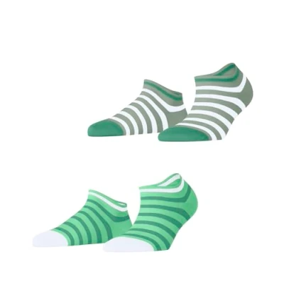 ESPRIT Women's Bold Stripes Multipack W Sn Cotton Low Cut Patterned 2 Pairs Trainer Socks, Multicolor Green Grey 0030, 2.5 5