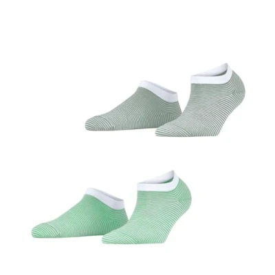ESPRIT Women's Fine Stripe Multipack W Sn Cotton Low Cut Patterned 2 Pairs Trainer Socks, Green 0210, 2.5 5