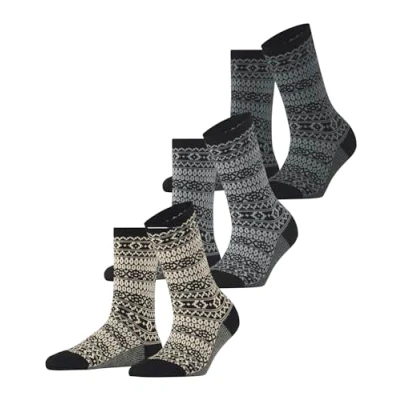 Pack of 3 with the same design in a Scandinavian Sami pattern These socks for women and teenage girls are made of a soft and breathable fabric and are comfortable on the skin; in a mid-calf length and with pattern These socks are ideal for work, everyday wear and for many shoe types such as trainers or loafers; high-quality construction with reinforced stress zones and flat seam in the toe area To maintain the shape and colour of this article after repeated washings, we recommend a gentle machine wash at 40°C One-size socks for any feet: the gender-specific knitting techniques ensure a wrinkle-free fit, a high wearing comfort and longer durability; the excellent gift idea - even without knowing the size Model number: 17490; available in one size fits all: 36-41