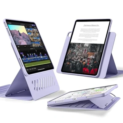 ESR for iPad Air 13 inch Case, Rotating Case with Removable Magnetic Cover, Adjustable Portrait/Landscape Stand Raised Screen View, 9 Standing Angles, Shift Series, Purple