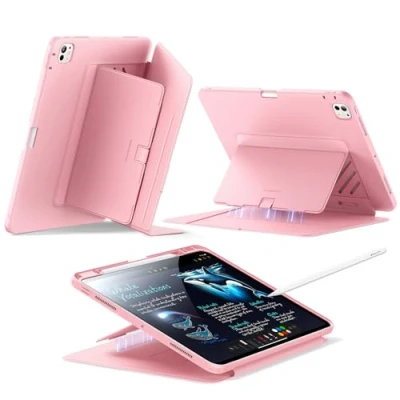 ESR for iPad Pro 13 inch Case M4 (2024), Vertical Stand Cover, Multi Angles, Ultra Stable (2024) with Pencil Holder, Flip Magnetic Series, Pink