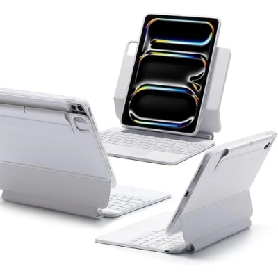 ESR iPad Pro 11 Inch Case with Keyboard (M4, 2024), 11(5th Gen) Easy Set Magnetic Stand, Portrait/Landscape Modes, Removable Protective Case, Rebound 360 Series, White