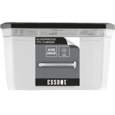This is a white zinc plated steel self-drilling screw with a cylinder head, manufactured by Scell It. Self-drilling screws are designed to drill and screw simultaneously, making them particularly useful for fixing thicker or stiffer materials White zinc plating is a protective coating that helps prevent screw corrosion, while the cylinder head provides a cleaner aesthetic finish Optimal hold: lid equipped with a foam insert to keep your fasteners in place at all times Hexagonal plugs: the core of the patented ESSBOX system to hold the boxes in place; Removable lids: for more mobility; Stackable boxes: easy transport and storage The ESSBOX SCELL-IT brand is known for bringing high quality tools for construction and construction professionals., Weight: 2.204622621848776 Pounds, Manufacturer: SCELL-IT