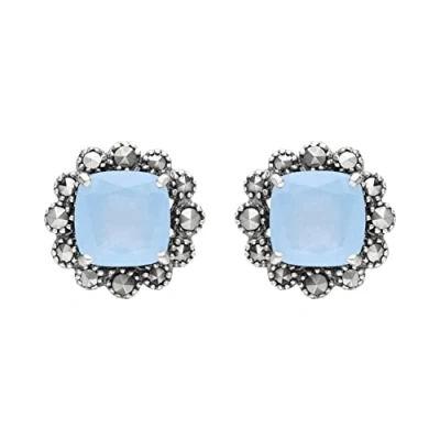 Esse Marcasite Sterling Silver Blue Jade and Classic Stud Earrings