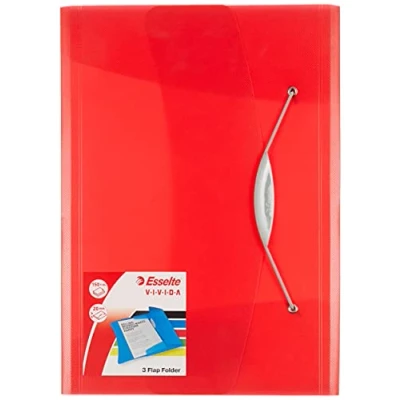 1x Red 3-Flap Folder, Holds up to 150 A4 sheets (80gsm), Ideal for the transportation and organisation of documents, Perfect for meetings and school 3 flaps inside stop loose pages from falling out, Wide enough to hold punched pockets, calculators, pens and notebooks, Elastic fastening keeps contents secure Combine with other products from the Leitz Vivida Range for the perfect office look Embossed and patterned finish, Wipe-clean plastic surface, durable and tear-resistant Contents: 1x Esselte 3-Flap Folder, A4, Flexible Plastic, Red, 624042, W x H x D: 23.3 x 32 x 0.8 cm, Weight: 100 g