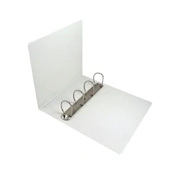 Presentation ring binder. 4 D-ring mechanism. Holds up to 580 sheets. Clear pockets on front and spine for personalisation. Made from durable polypropylene. Size: A4. Colour: white.