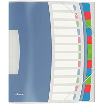 Esselte A4 Divider Book, Translucent, Integrated Index with 12 Compartments, Holds Up to 200 Sheets, Elastic Closure, White, VIVIDA Range, 624030